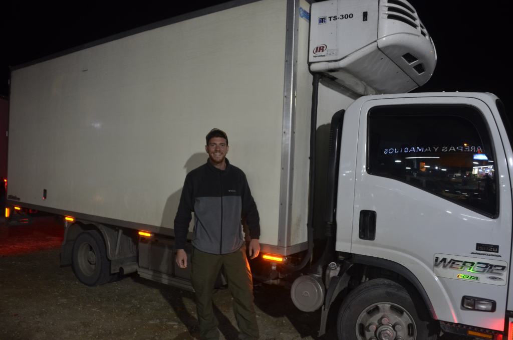 נהג המשאית שלנו בינתיים, עוצר לאכול בדוכן הנקניקיות, ושם מנהל המקום מפציר בו בכל זמן הארוחה בכלל בלי שאני שם לב שהוא חייב לעזור לי, ולא עוזב אותו לשנייה.