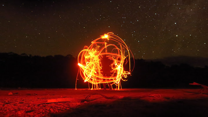 בלילה מקימים מחנה על שפת הנהר הרחב, נהנים מהעובדה שמחר היום האחרון להליכה והולכים לישון מאוחר, שיחות אל תוך הלילה, צילומי לילה וקצת אש.