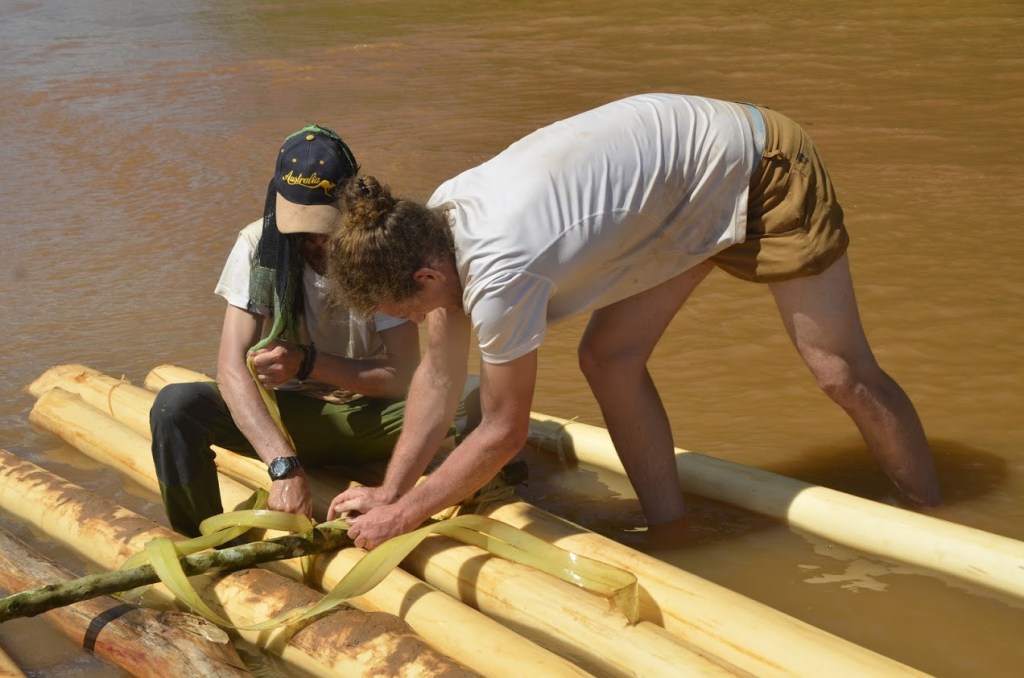 הגיע השלב הכיפי, בהדרכת חוסה אנחנו לומדים לעשות את הקשרים בכיוון הנכון ומחברים את הרפסודה במקצועיות. לאחר שעה של הרכבה אנחנו מוכנים, או לפחות חוסה אומר שאנחנו מוכנים, כי אני האוסטרלי והצרפתי מסתכלים אחד על השני ולא ממש מאמינים שאנחנו עולים על נהר הטואיצ'י עם עצים שחתכנו רק לפני שעתיים…אבל גם אף אחד לא ממש מעז להגיד משהו ולהרוס את יצר ההרפתקניות שבוער בכולנו.