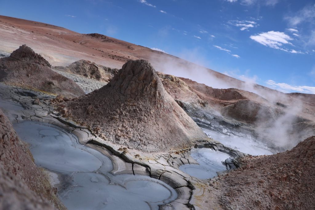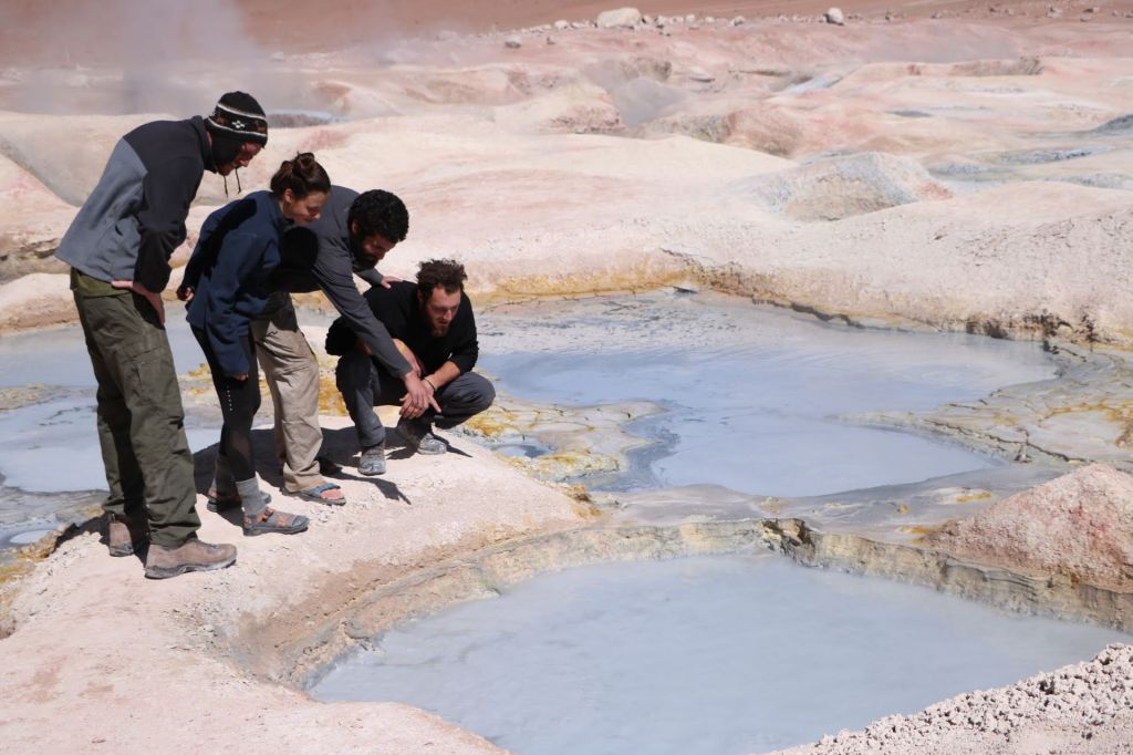 חוזרים למסלול, עוקבים אחרי ג'יפים של תיירים ומגיעים לגייזרים, מקום מיוחד ועוצמתי.