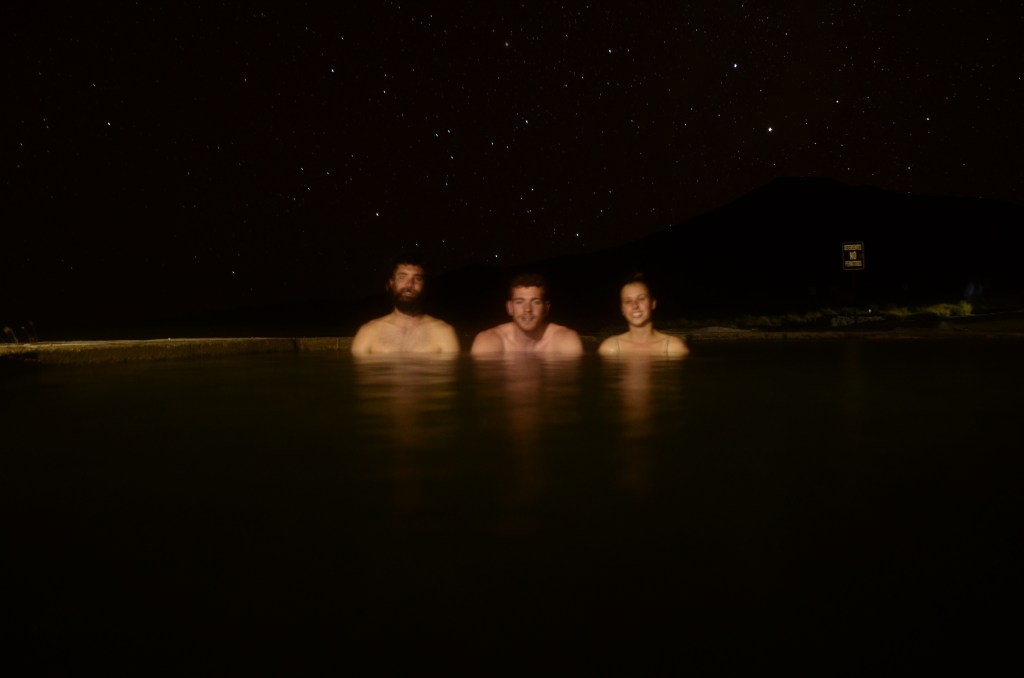 לקראת לילה ומנוחה קצרה אנחנו יוצאים אל המעיינות החמים, שילוב מדהים של מדבר כמעט בלי אורות מסביב מגלה לנו את כל שביל החלב והכוכבים במלוא הדרם ובו זמנית הגוף נהנה ממעינות חמים מבטן האדמה, לגמרי מה שהיינו צריכים אחרי יום מורט עצבים.