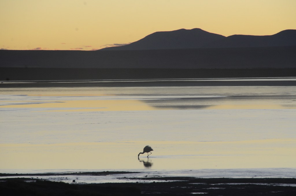 למראה המדהים של הזריחה מצטרפים פלמנגוים שיוצרים תמונה מושלמת.