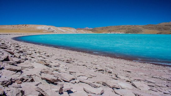 על אחד הקירות יש פוסטר תיירותי, ישן מאוד בצבע דהוי, שבו מפרסמים את הפנינה של המדבר הדרום בוליביאני – הלגונה התכולה (Laguna celeste)